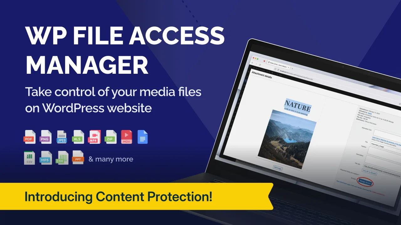 WP File Access Manager lets you easily restrict access to any file in your WordPress media library by user role, ID, login status, file type, or even post content. Perfect for WooCommerce, Paid Memberships Pro, and TNC Flipbook integrations, it secures PDFs, images, videos, and more on single sites. It allows you to control access for every single file you upload. Take control of your media files on WordPress website.