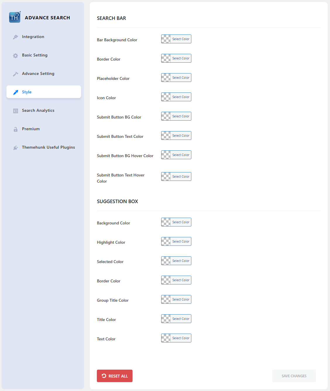 The style setting is given to stylize the search box with colors. A separate color option is given for each component of the search box.
